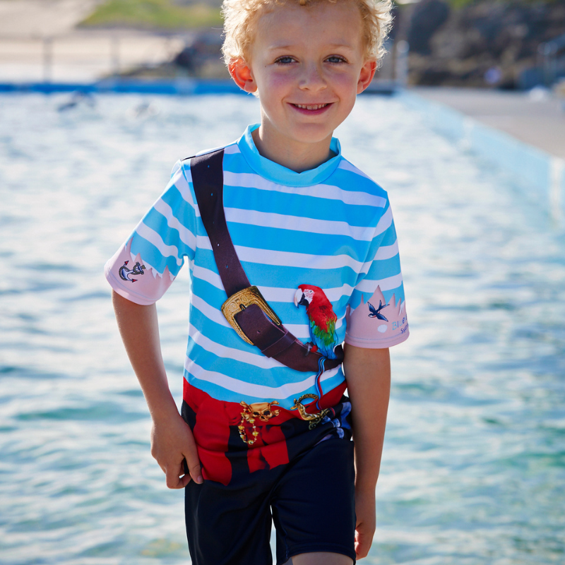 Ethically made swimwear and sun blocking rashies, kids will love and will be protected all day.